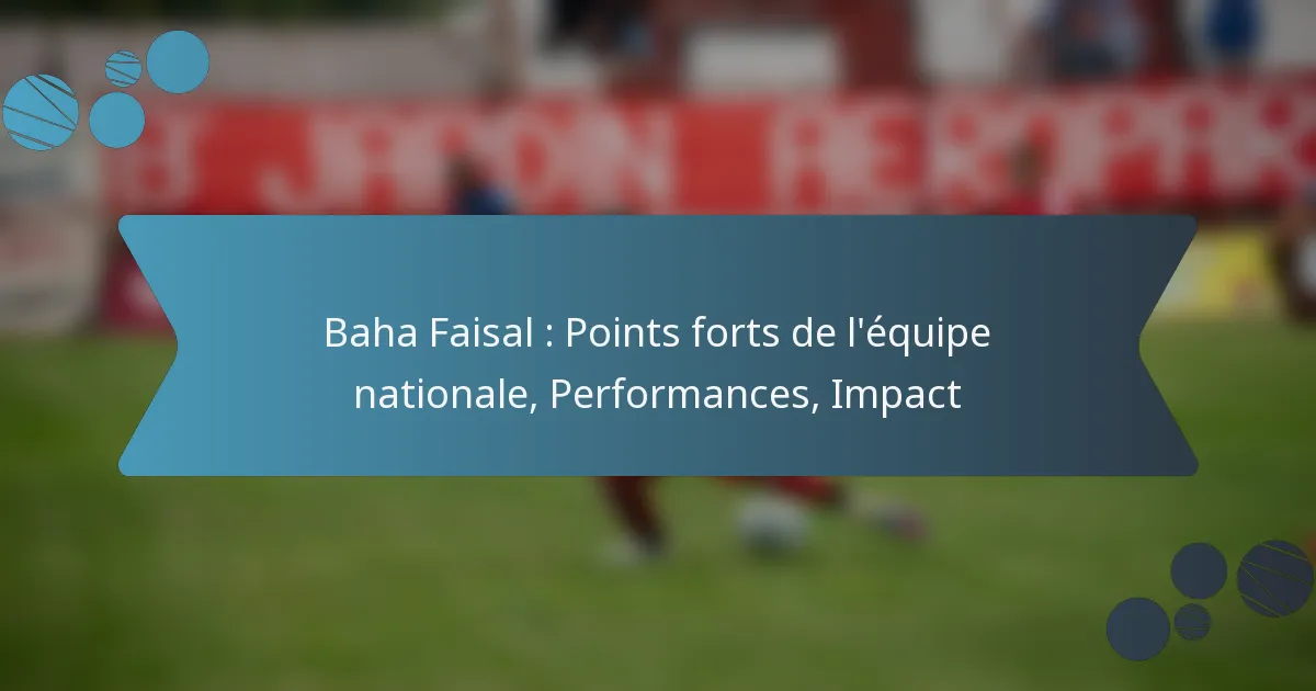 Baha Faisal : Points forts de l’équipe nationale, Performances, Impact